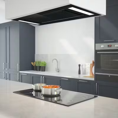 The sleek, matte finish of the hood serves as a focal point in the room, drawing attention to its clean lines and modern features. Plus, black is a color that resists smudges and fingerprints, so your cooker hood will look pristine for longer without requiring constant cleaning. This makes it an ideal choice for busy kitchens that see a lot of cooking and activity.